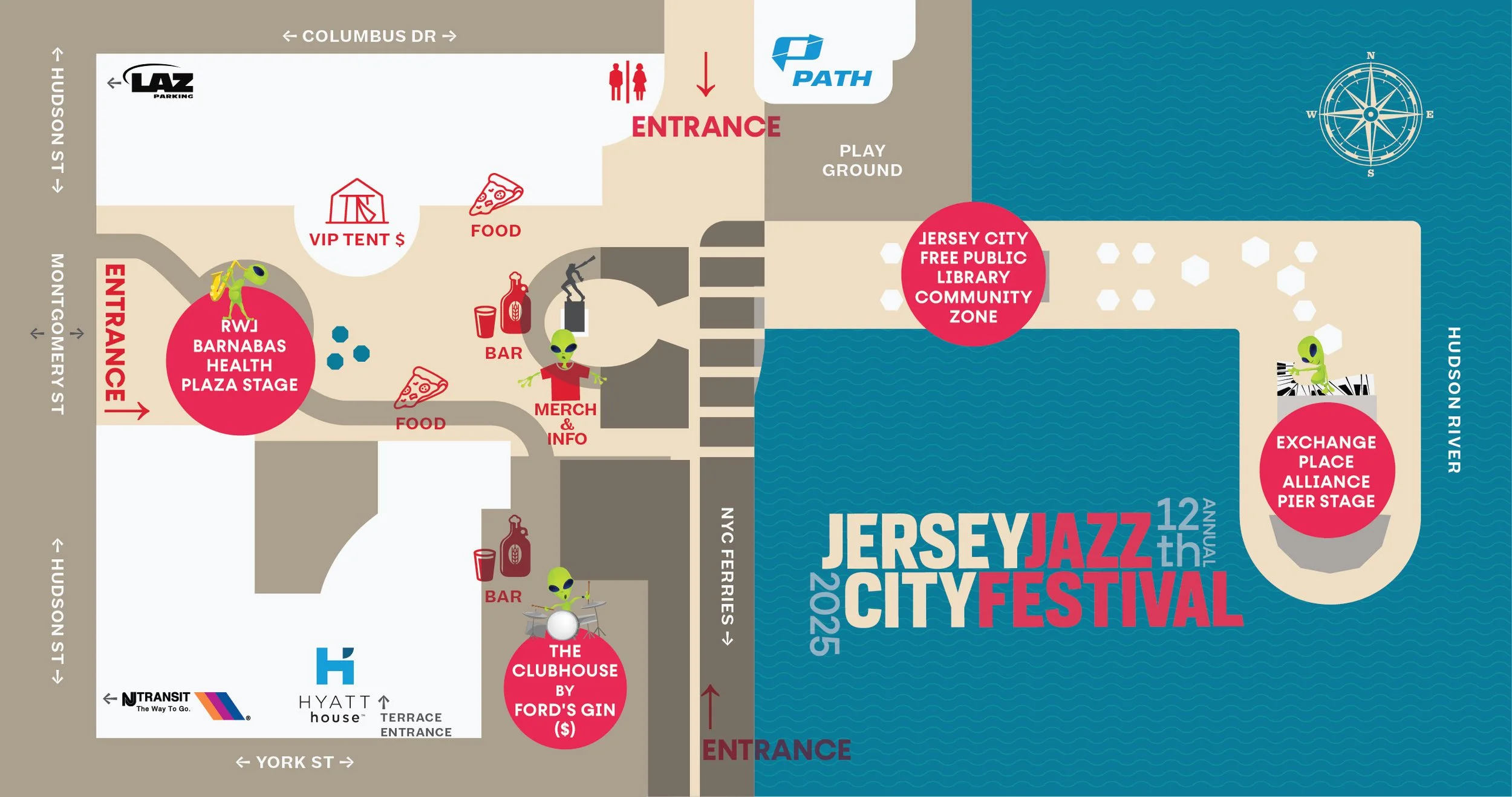 The Festival on May 30 - 31 is very easy to access via PATH and Hudson-Bergen Light Rail (both Exchange Place stops). NJ Transit bus and NY Waterway Ferry also drop off close to 1 Exchange Place.